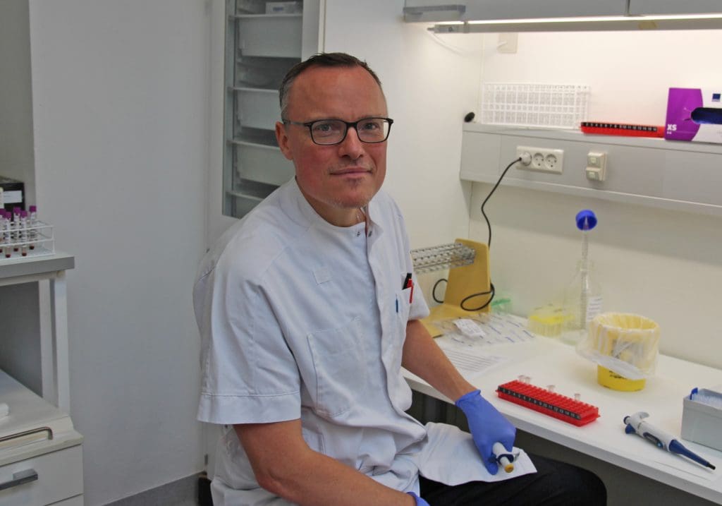 Photo: David Møbjerg Kristensen in the lab. Credit: Rigshospitalet.
